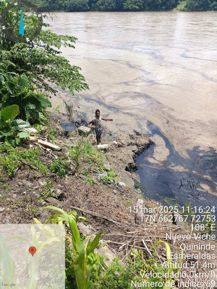 Just 15 minutes from the epicentre in the Quinindé district, the first reports of the spill began to reach people. María José Pacho, an environmental activist, learned of it not only through social media, but also by the sudden arrival of numerous alarmed families.