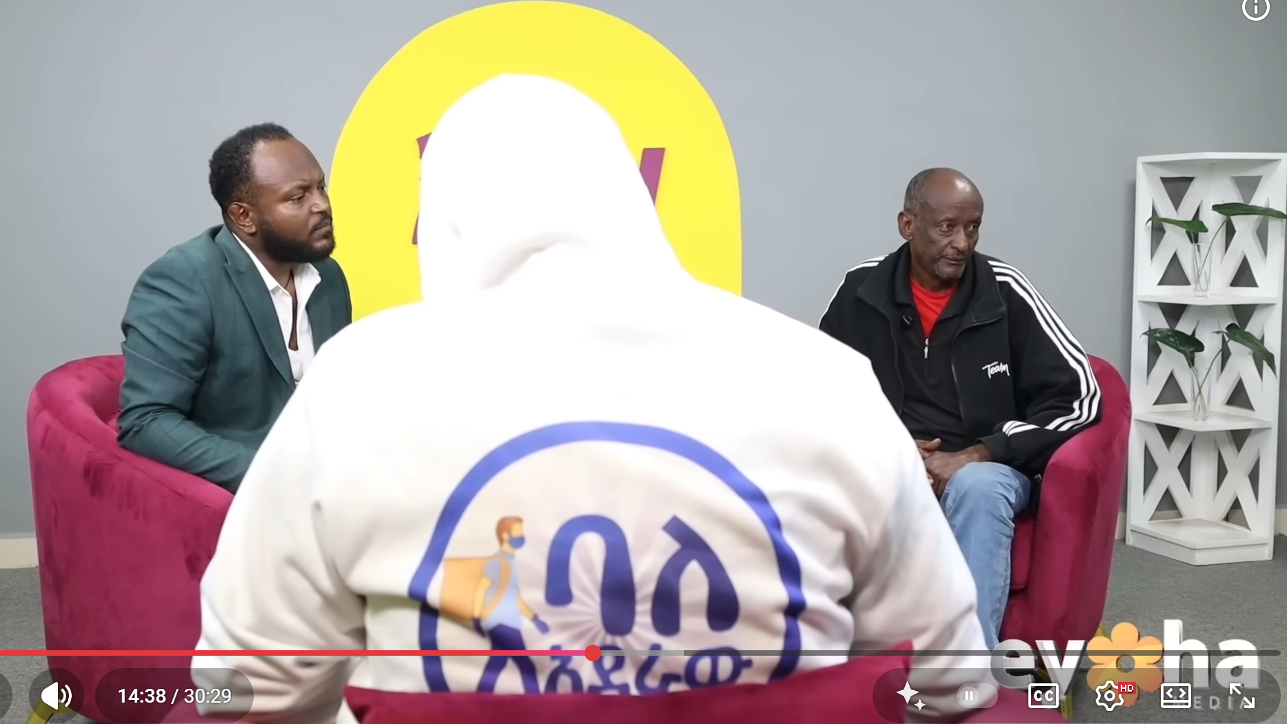In a follow-up, Eyoha Media brought in both @melektegnaw_ and “Baladeraw,” hoping to settle the story. But instead of pressing for documents or receipts, the host guided Tamru toward retracting his accusations. Identities were obscured: no on-screen names or identifiers appeared; both fundraisers wore hoods, kept their backs to the camera, and only their voices were audible. No documentation was presented or reviewed. The hooded fundraisers walked away without answering how much was raised, who handled it, or whether any of it reached the beneficiary.